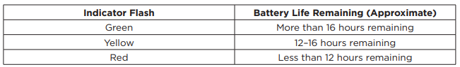 The first LED flash indicates Battery Status. See indicators above to know when action is needed.