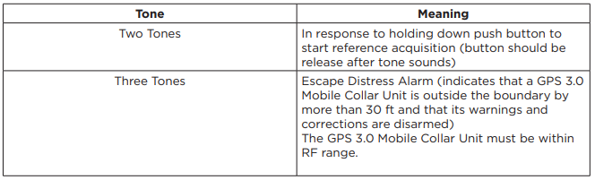When in normal operating mode the GPS 3.0 Mobile Collar Unit will generate tones