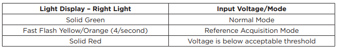 The GPS 3.0 Base Unit’s Right LED reflects base input voltage and mode. See indicators below to know when action is needed.